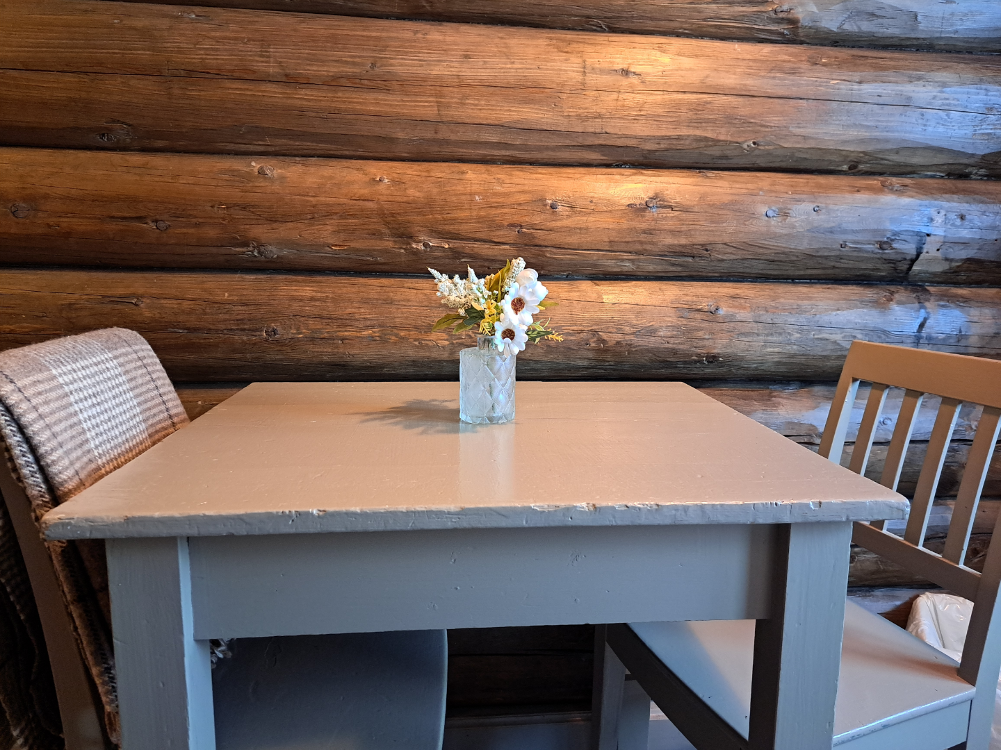 Plassbygde køyesenger i god tradisjonell hyttestil i heltre. Oppredde senger med håndkle